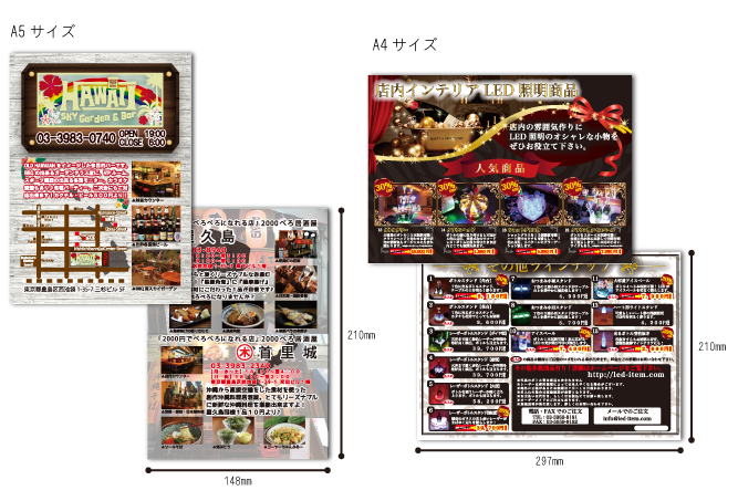 | チラシA5 | 6,500 円 | 8,500 円 | 7,000 円 | 9,000 円 |
